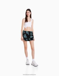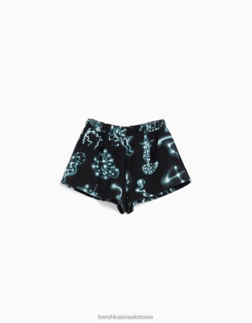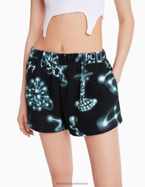 נשים הדפס מכנסי ברמודה קצרים שָׁחוֹר 2L6JD1215 Alehsy x Bershka הַלבָּשָׁה