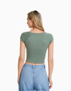 נשים ז’קט במרקם ניילון קצוץ ripstop חָקִי 2L6JD1105 Bershka הַלבָּשָׁה