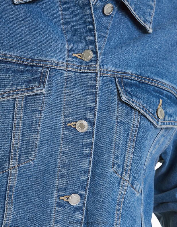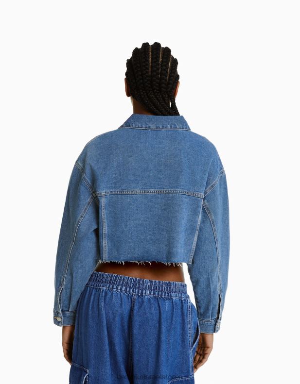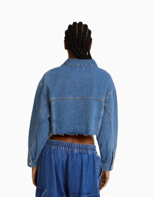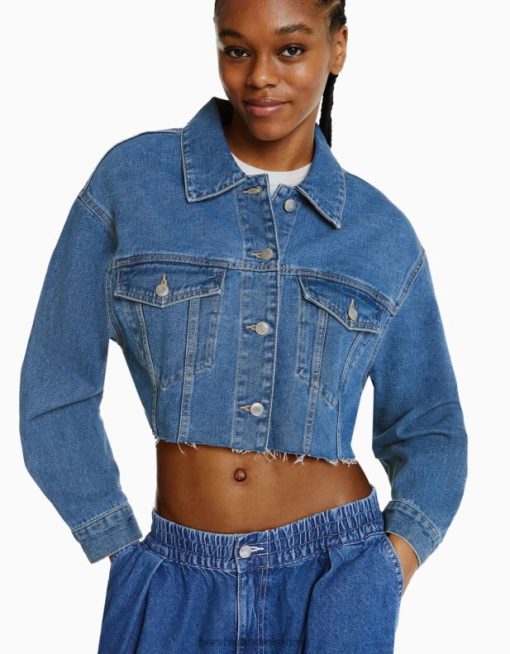 נשים ז’קט ג’ינס קצוץ כְּחוֹל 2L6JD2021 Bershka הַלבָּשָׁה
