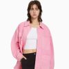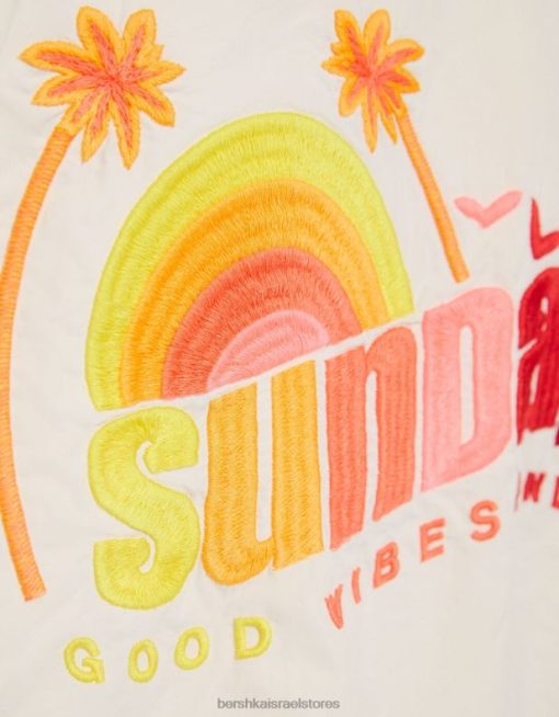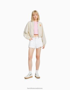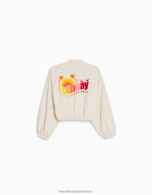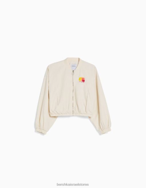 נשים ז’קט ניילון רקום קרם 2L6JD1158 Bershka הַלבָּשָׁה
