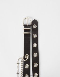 נשים חגורה עם לולאות שרשרת וצלב שָׁחוֹר 2L6JD2550 Bershka אביזרים