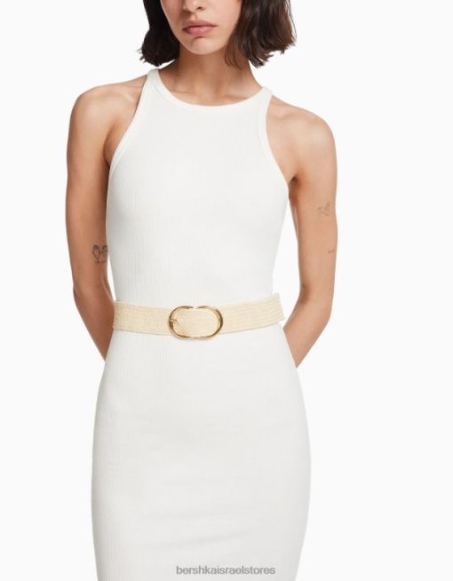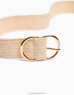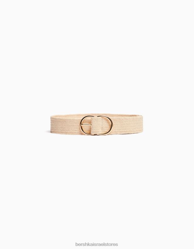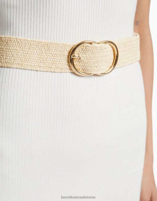 נשים חגורת אבזם כפולה בעיצוב raffia חוֹל 2L6JD2541 Bershka אביזרים