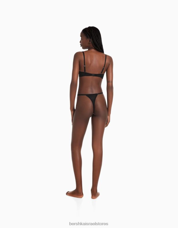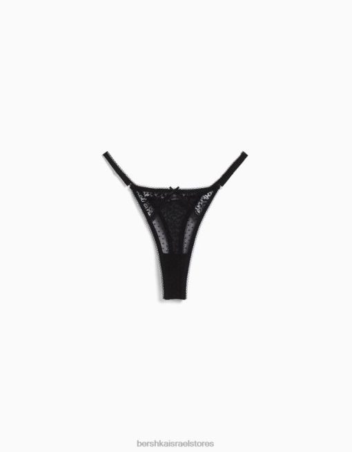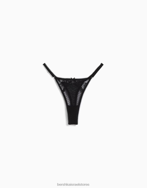 נשים חוטיני תחרה בלונדינית מרושת מנוקד שָׁחוֹר 2L6JD1749 Bershka הַלבָּשָׁה
