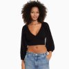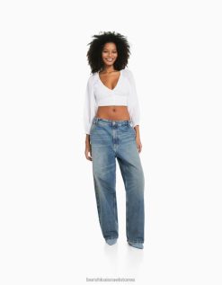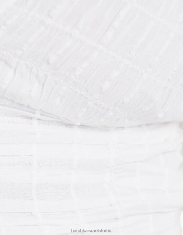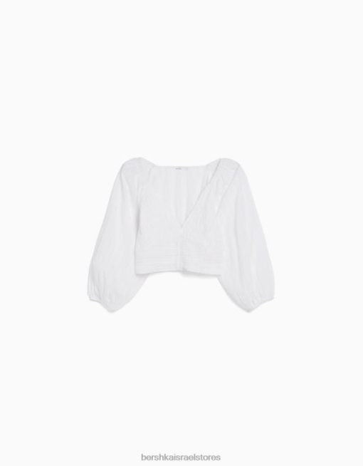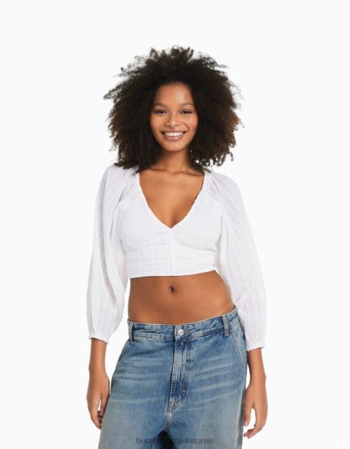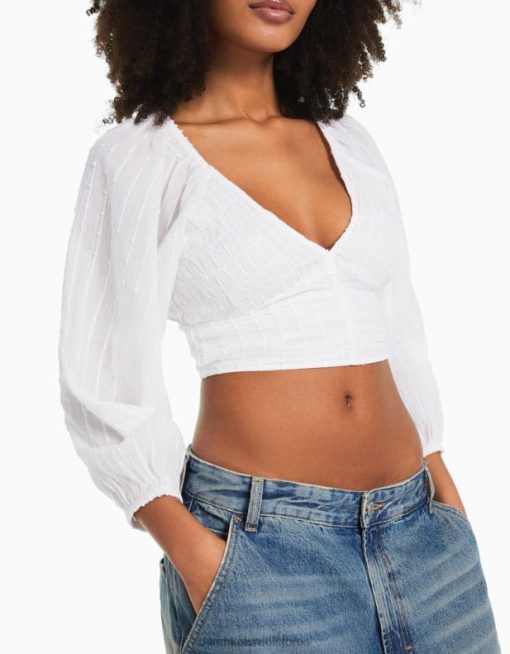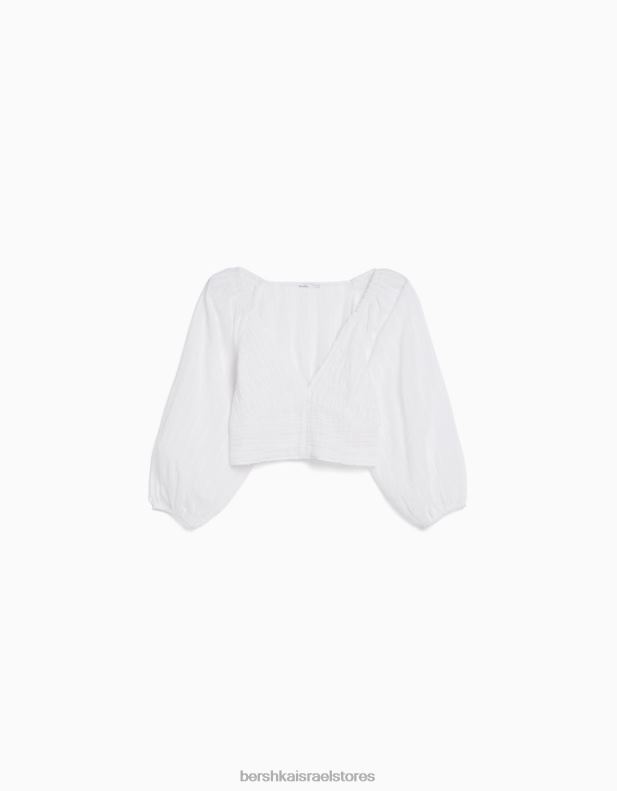 נשים חולצה בעלת שרוולים ארוכים עם צווארון V צבע קרם 2L6JD951 Bershka הַלבָּשָׁה
