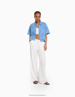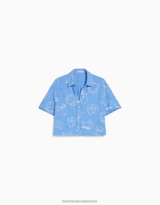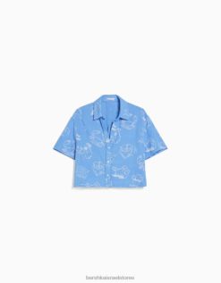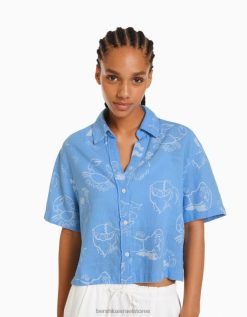 נשים חולצה כפרית עם שרוולים קצרים בִּלעָדִי 2L6JD908 Bershka הַלבָּשָׁה