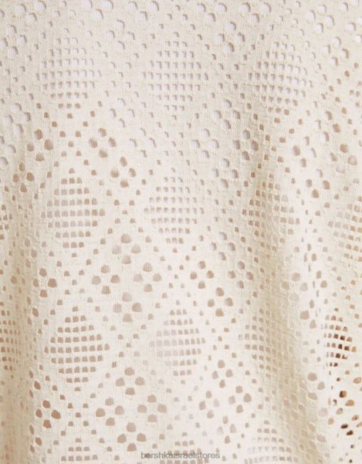 נשים חולצה כפרית עם שרוולים קצרים לבן 2L6JD1886 Bershka הַלבָּשָׁה