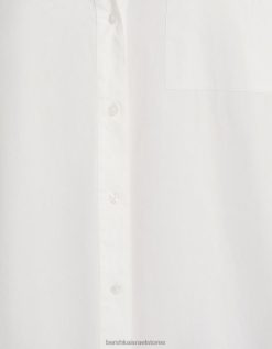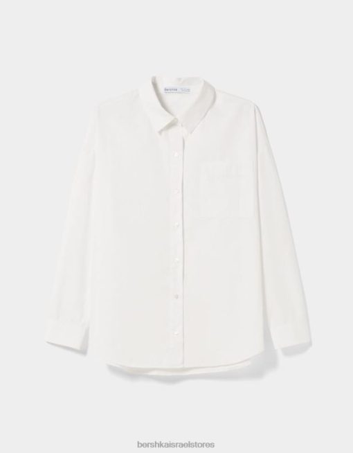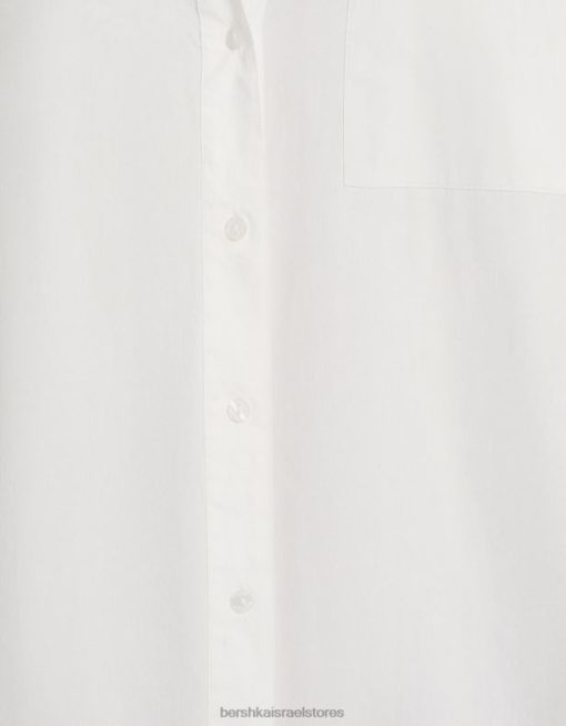 נשים חולצת אוברסייז של פופלין עם שרוולים ארוכים לבן 2L6JD943 Bershka הַלבָּשָׁה