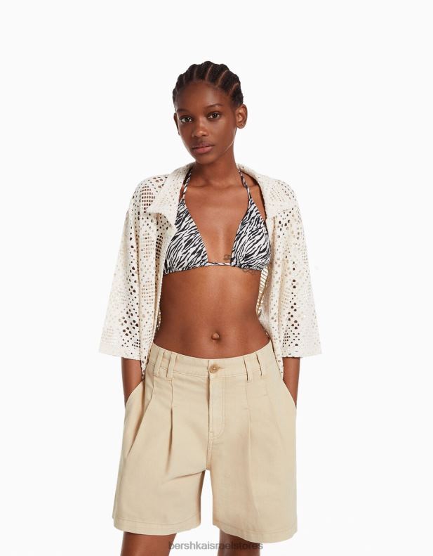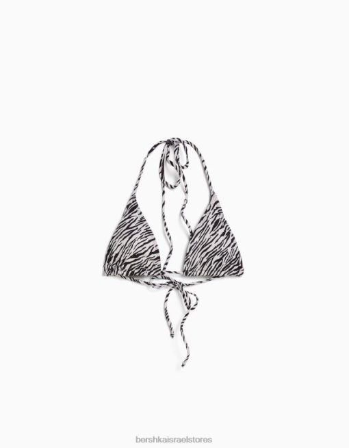 נשים חולצת ביקיני בהדפס זברה קרם 2L6JD1885 Bershka הַלבָּשָׁה