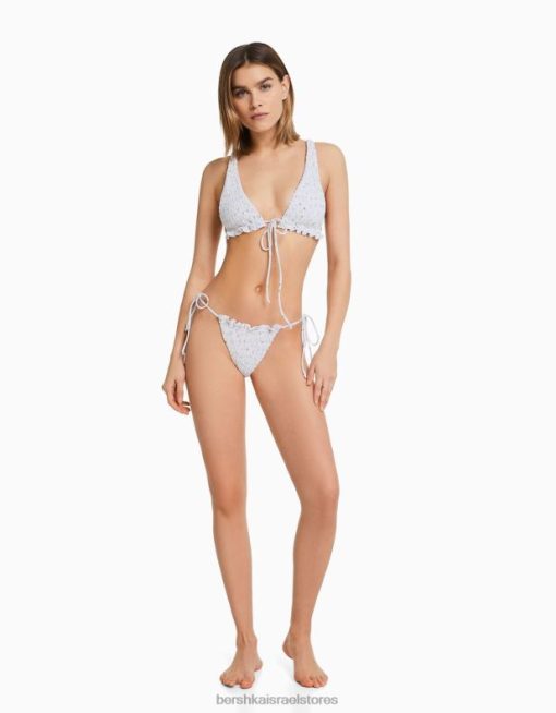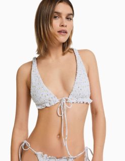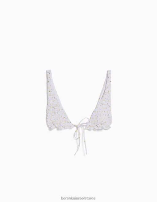 נשים חולצת ביקיני מעוטרת לבן 2L6JD1814 Bershka הַלבָּשָׁה
