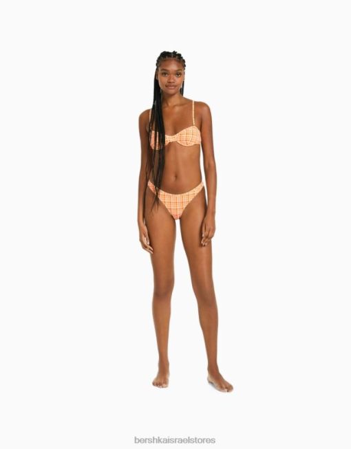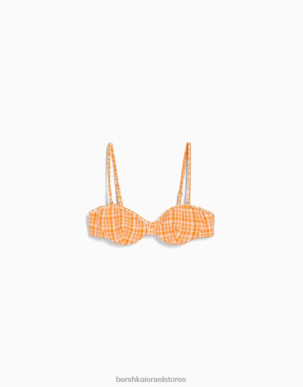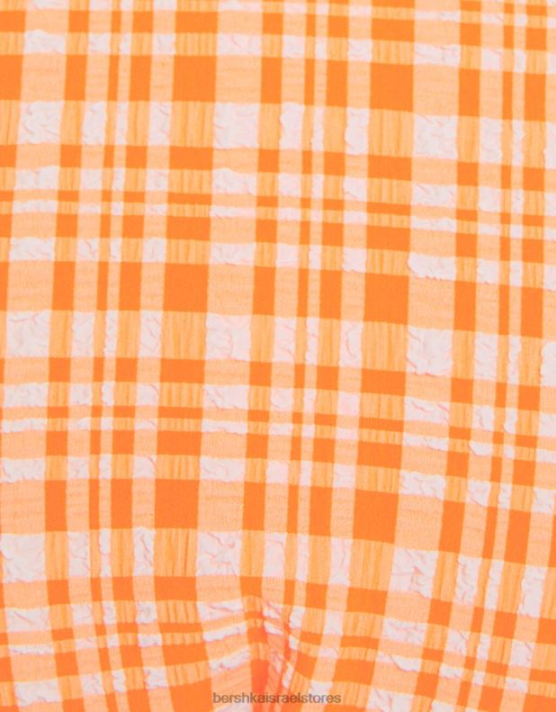 נשים חולצת ביקיני משובצת ג’ינגהם תפוז 2L6JD1799 Bershka הַלבָּשָׁה
