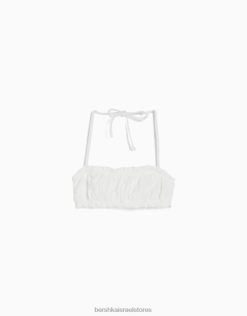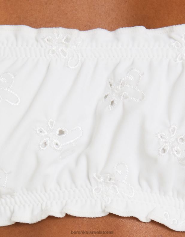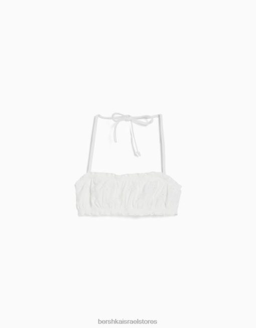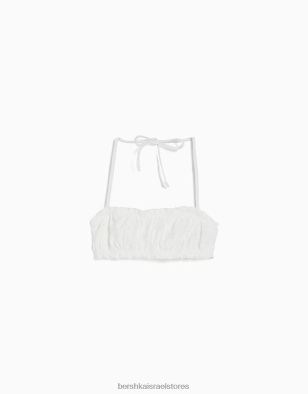 נשים חולצת ביקיני רקמה שוויצרית לבן 2L6JD1792 Bershka הַלבָּשָׁה
