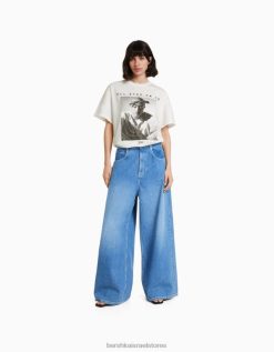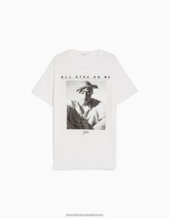 נשים חולצת טופאק עם שרוול קצר בכושר רגיל צבע קרם 2L6JD339 Bershka הַלבָּשָׁה