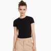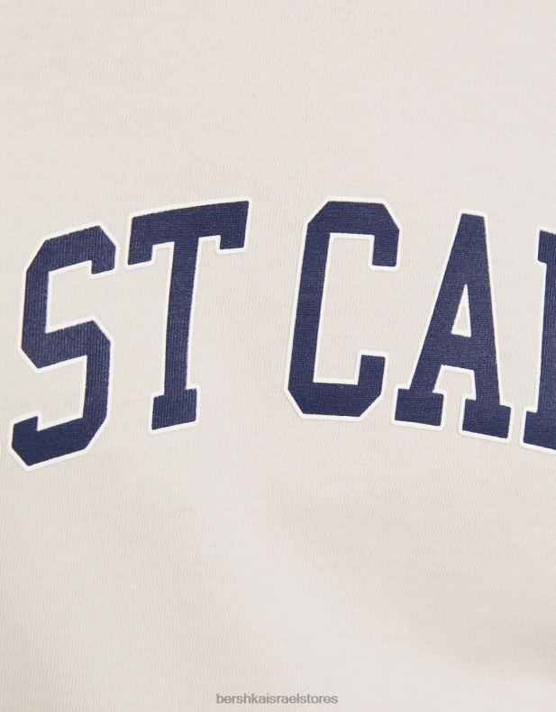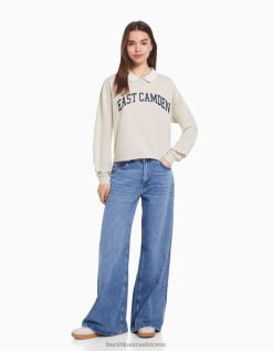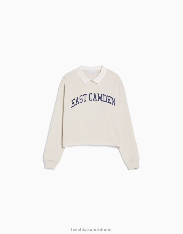 נשים חולצת טי מודפסת עם צווארון פולו עם שרוולים ארוכים אֶבֶן 2L6JD620 Bershka הַלבָּשָׁה