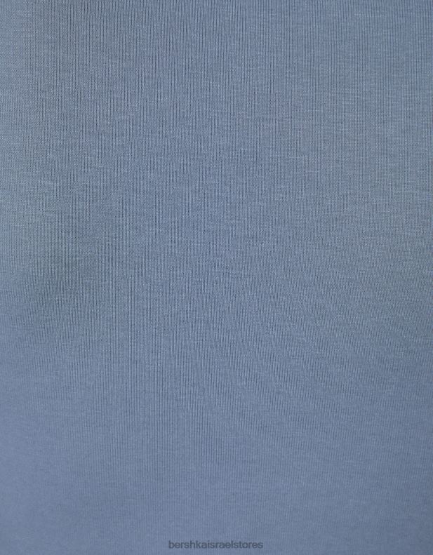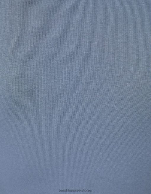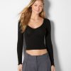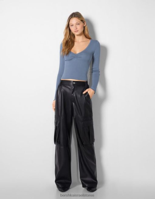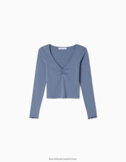 נשים חולצת טי עם שרוולים ארוכים עם צווארון V אסוף כְּחוֹל 2L6JD548 Bershka הַלבָּשָׁה
