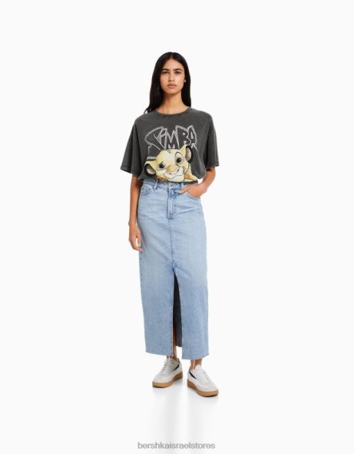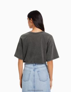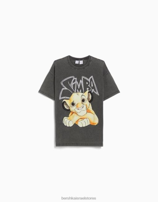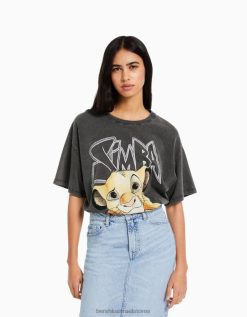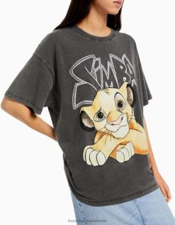 נשים חולצת טי עם שרוולים קצרים בהדפס סימבה אפור 2L6JD600 Bershka הַלבָּשָׁה