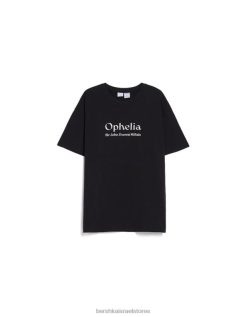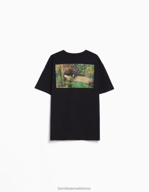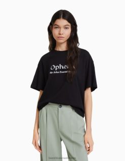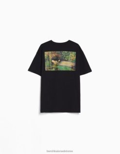 נשים חולצת טי עם שרוולים קצרים בהדפס סדרת אמנות שָׁחוֹר 2L6JD446 Bershka הַלבָּשָׁה