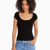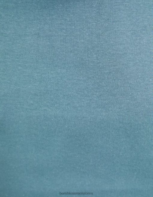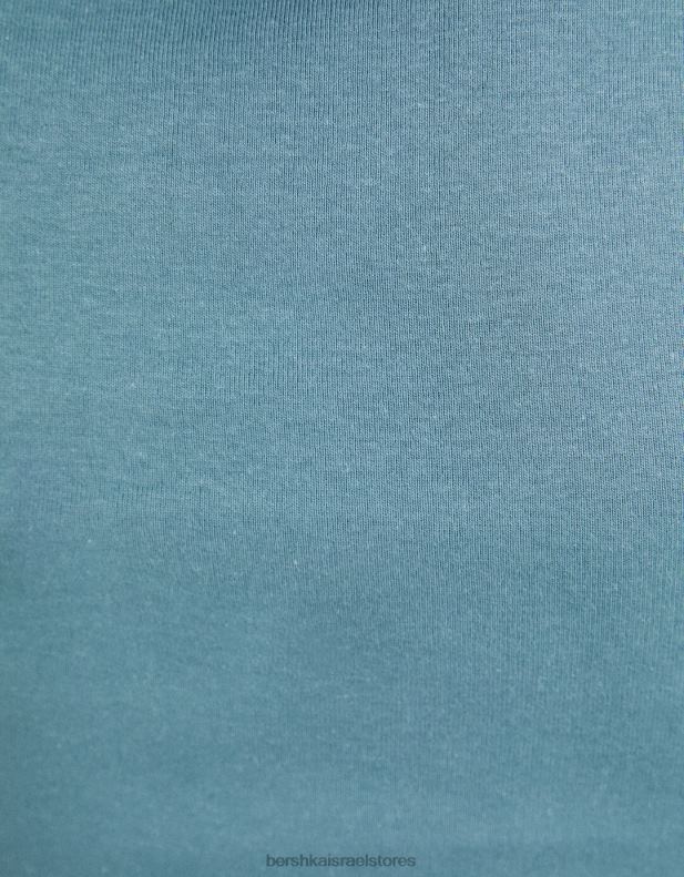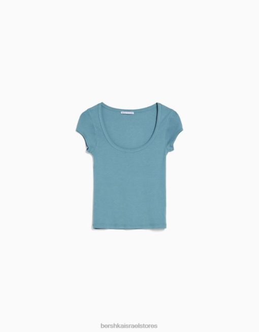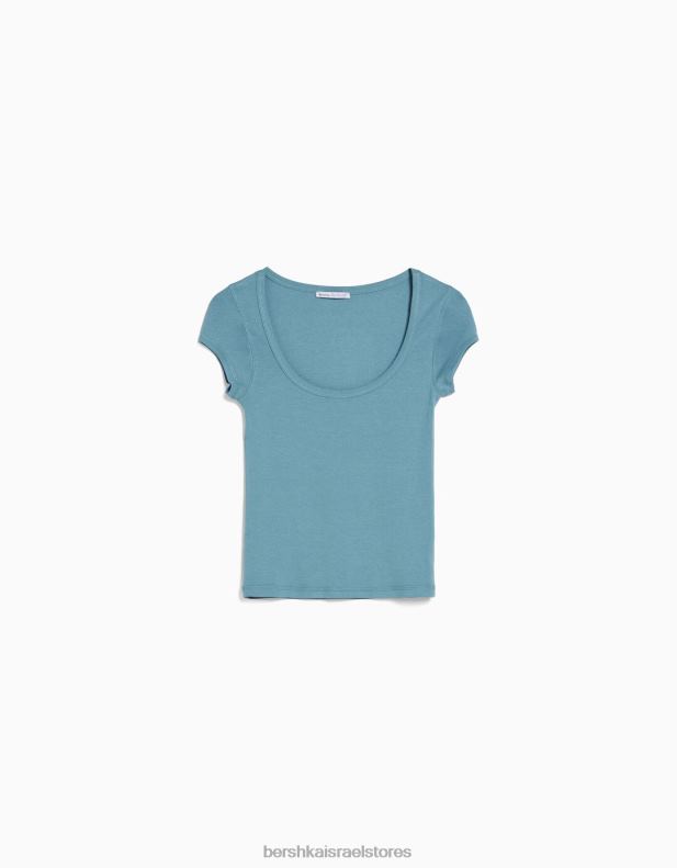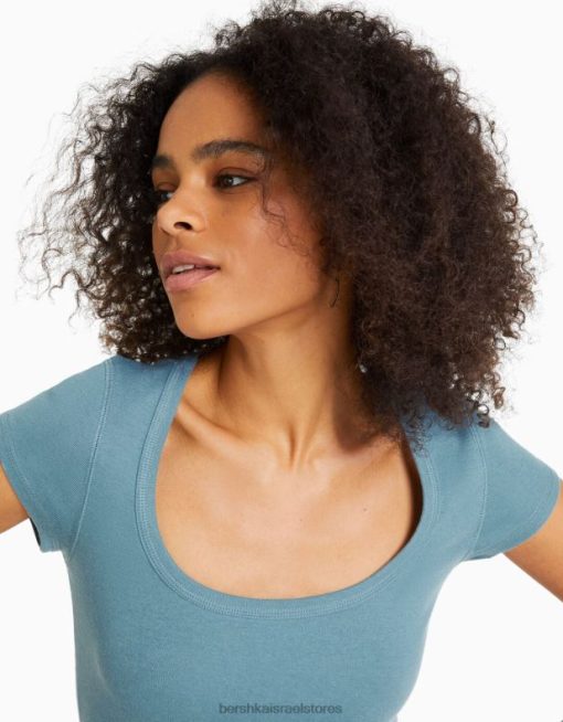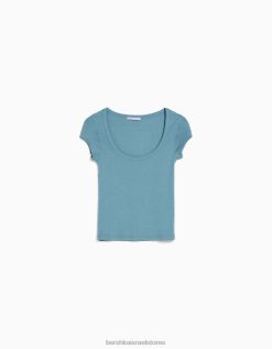 נשים חולצת טי עם שרוולים קצרים עם צווארון נשטף כחול 2L6JD568 Bershka הַלבָּשָׁה