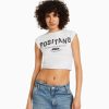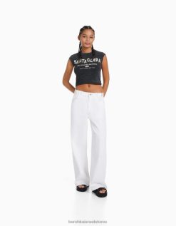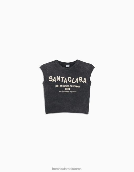 נשים חולצת טי קצוצה שרוולים קצרים עם הדפס אפור 2L6JD450 Bershka הַלבָּשָׁה