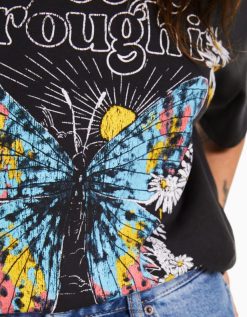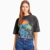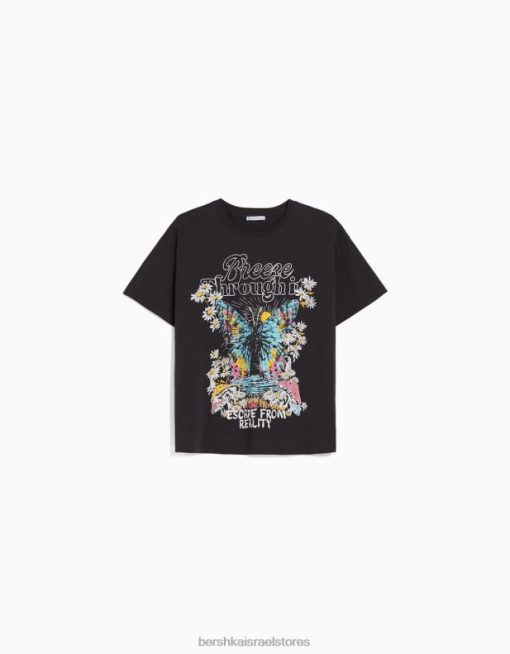 נשים חולצת טי שרוול קצר עם הדפס אפור כהה 2L6JD468 Bershka הַלבָּשָׁה