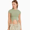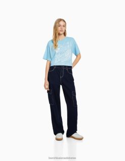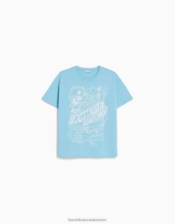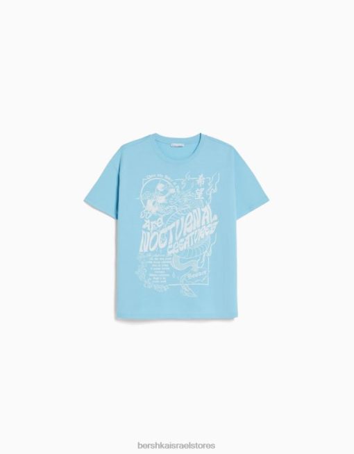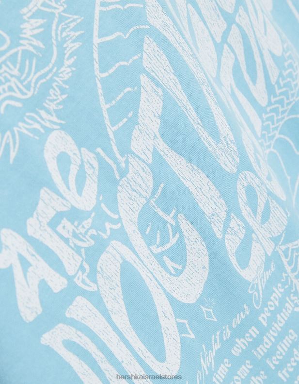 נשים חולצת טי שרוול קצר עם הדפס כְּחוֹל 2L6JD507 Bershka הַלבָּשָׁה