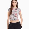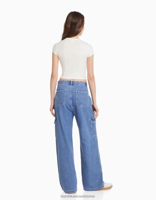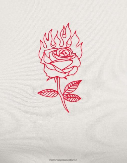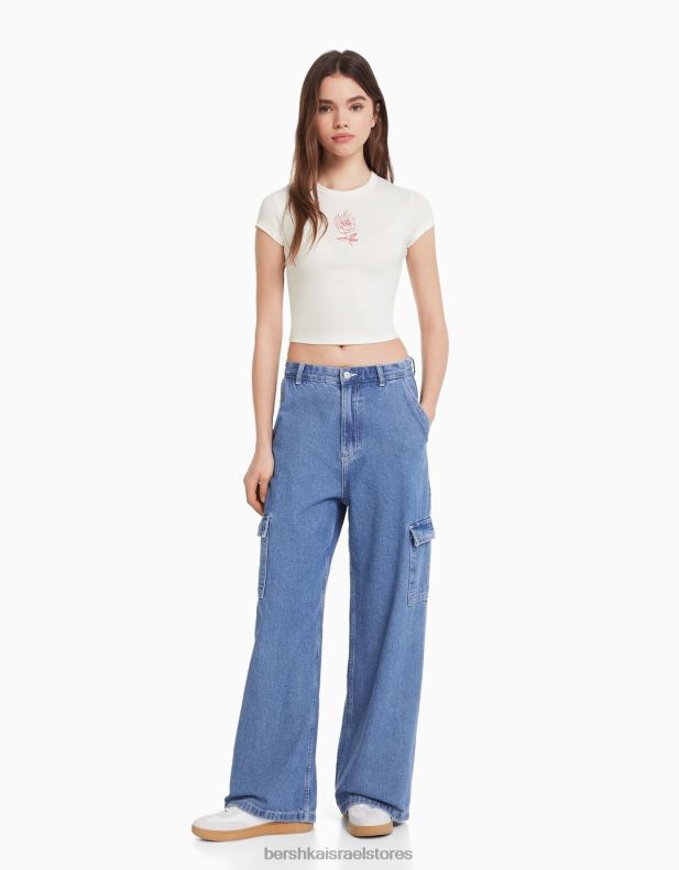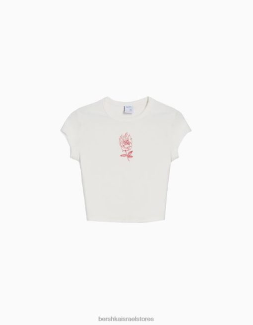 נשים חולצת טי שרוול קצר עם הדפס לבן 2L6JD595 Bershka הַלבָּשָׁה