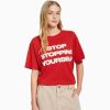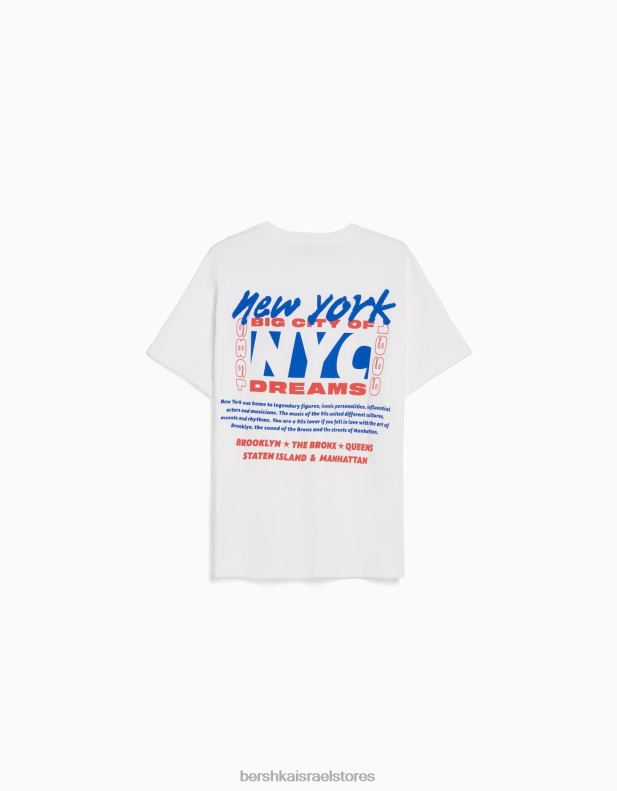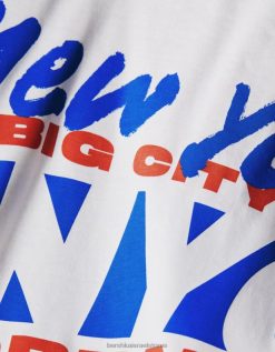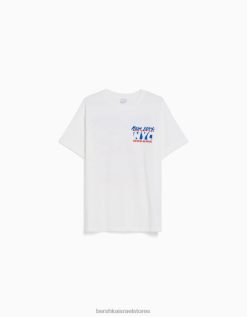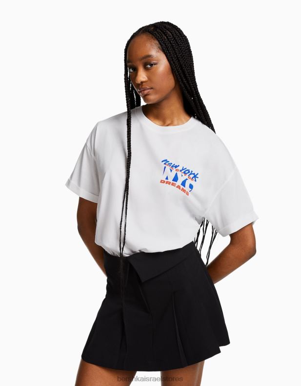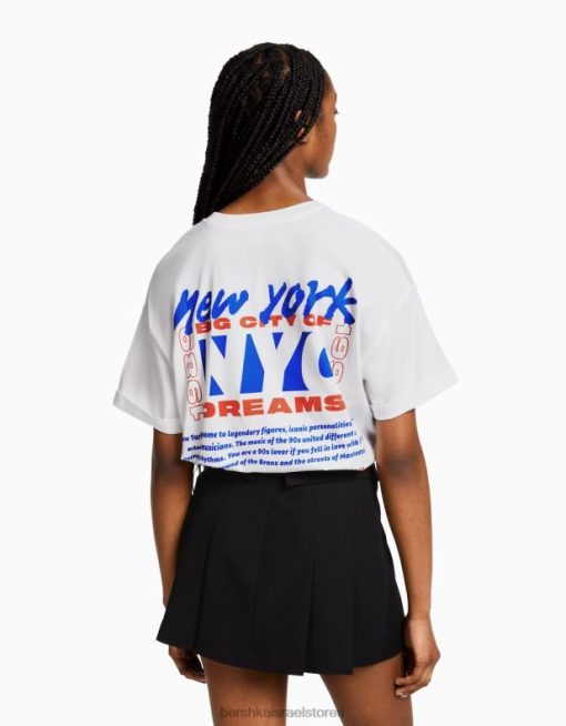 נשים חולצת טי שרוול קצר עם הדפס צבע קרם 2L6JD404 Bershka הַלבָּשָׁה