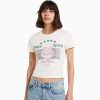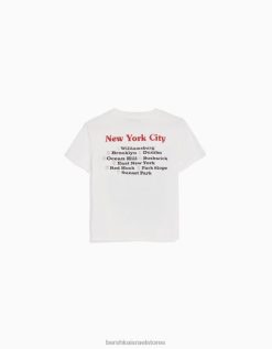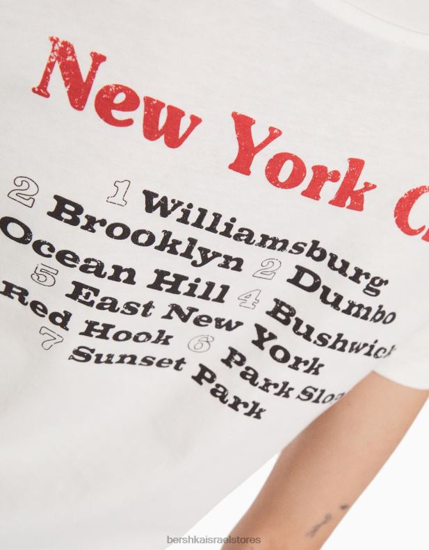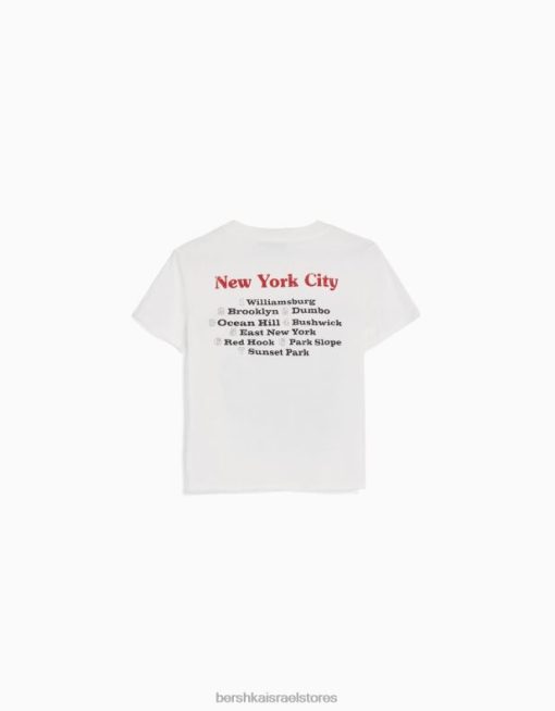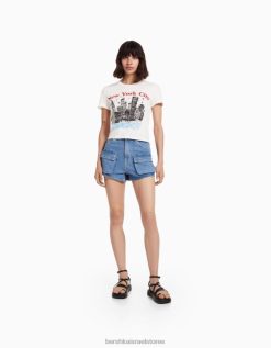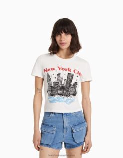 נשים חולצת טי שרוול קצר עם הדפס קרם 2L6JD494 Bershka הַלבָּשָׁה