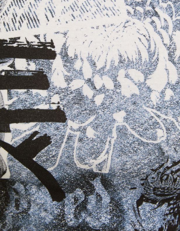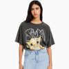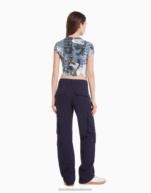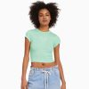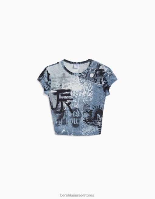 נשים חולצת טי שרוול קצר עם הדפס קרם 2L6JD599 Bershka הַלבָּשָׁה