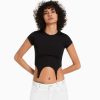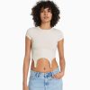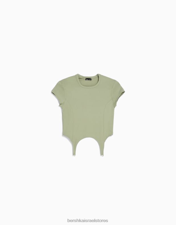 נשים חולצת טי שרוול קצר עם פירוט חָקִי 2L6JD510 Bershka הַלבָּשָׁה