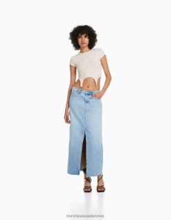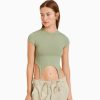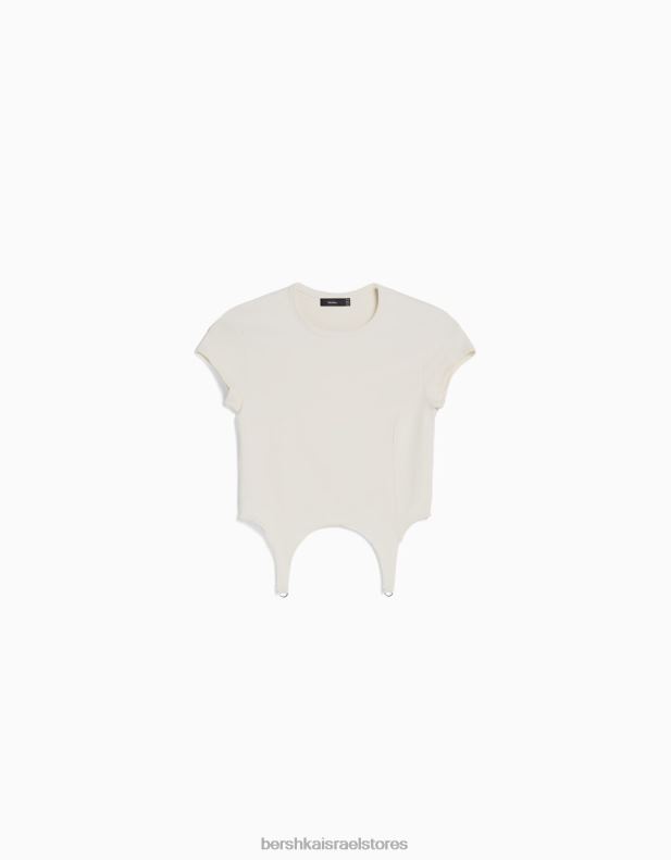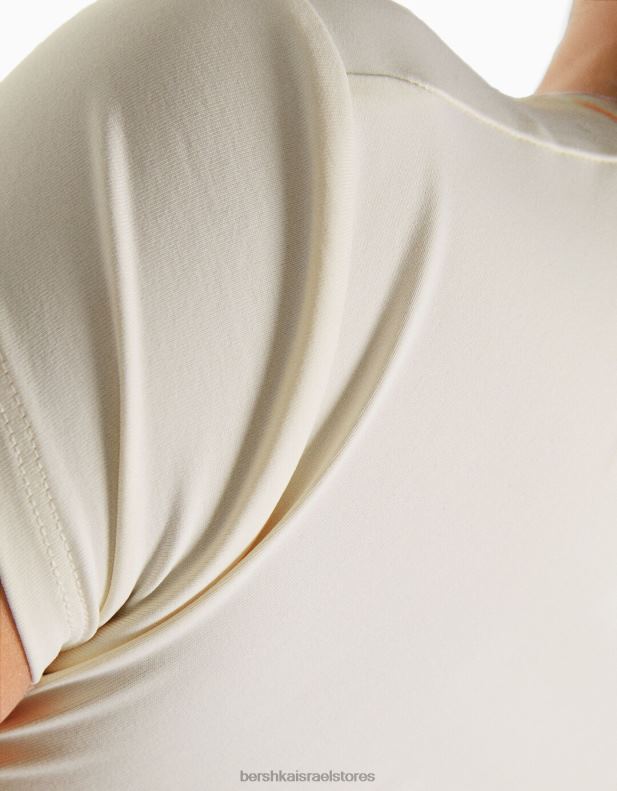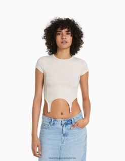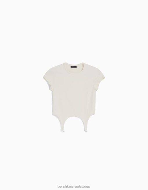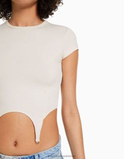 נשים חולצת טי שרוול קצר עם פירוט קרם 2L6JD509 Bershka הַלבָּשָׁה