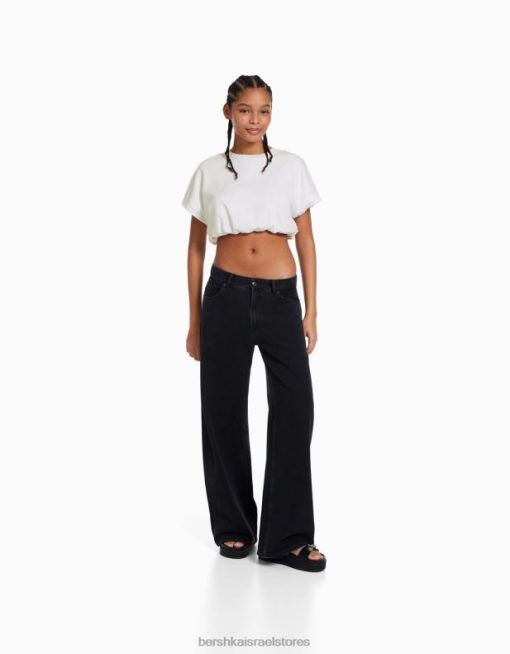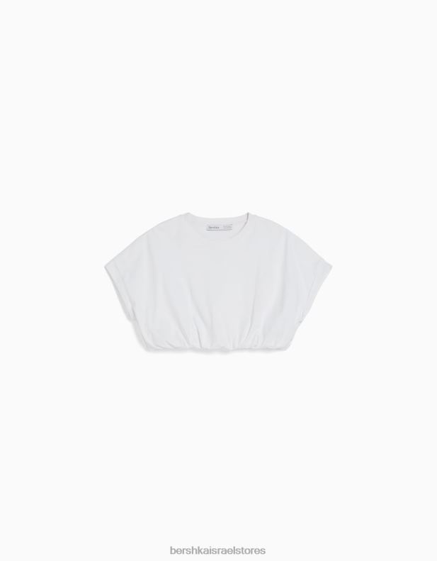 נשים חולצת טריקו אסוף עם שרוולים קצרים עם אלסטי לבן 2L6JD380 Bershka הַלבָּשָׁה