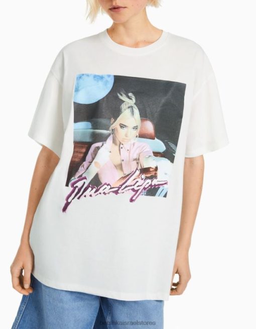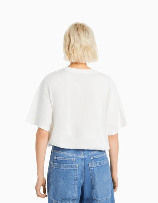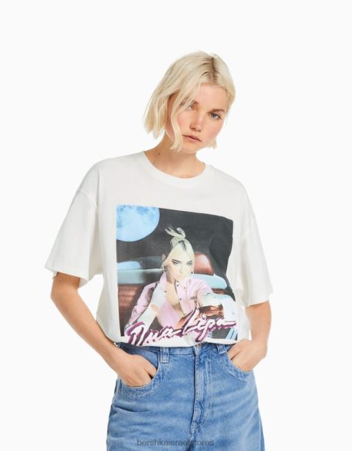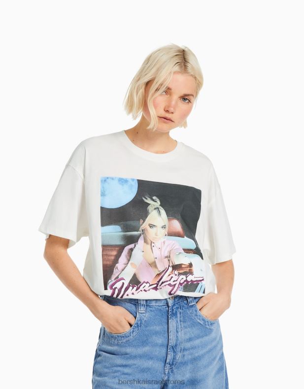 נשים חולצת טריקו בהדפס דואה ליפה עם שרוולים קצרים צבע קרם 2L6JD483 Bershka הַלבָּשָׁה