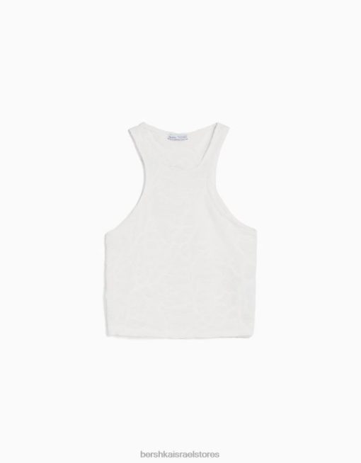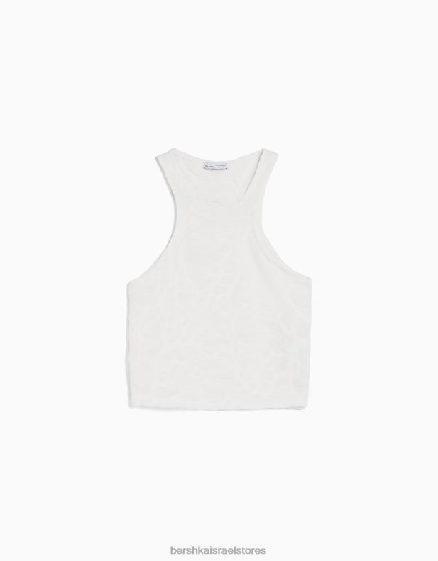 נשים חולצת טריקו ללא שרוולים בעלת מרקם קרם 2L6JD376 Bershka הַלבָּשָׁה