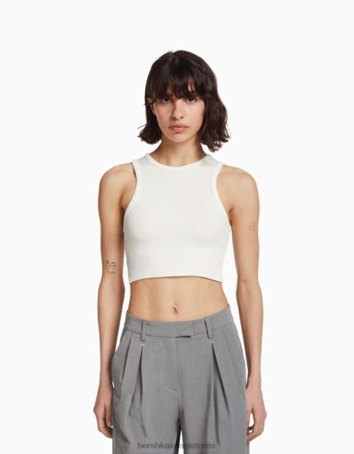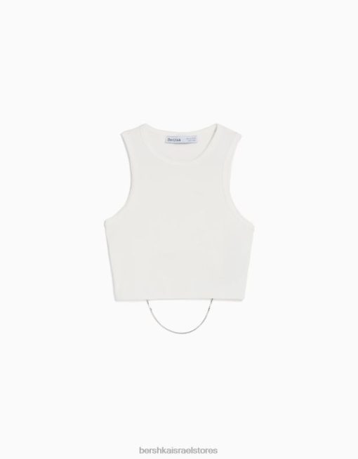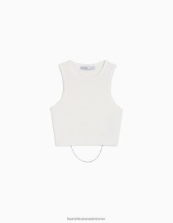 נשים חולצת טריקו ללא שרוולים עם גב עם תכשיטים לבן 2L6JD525 Bershka הַלבָּשָׁה