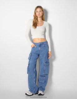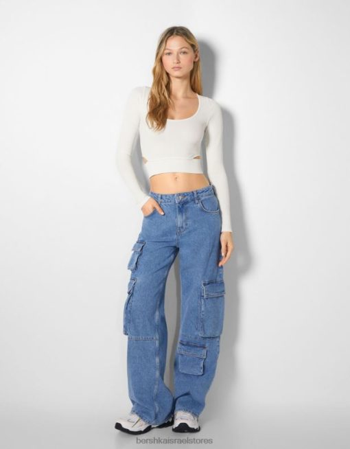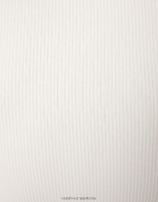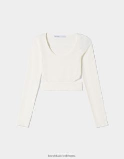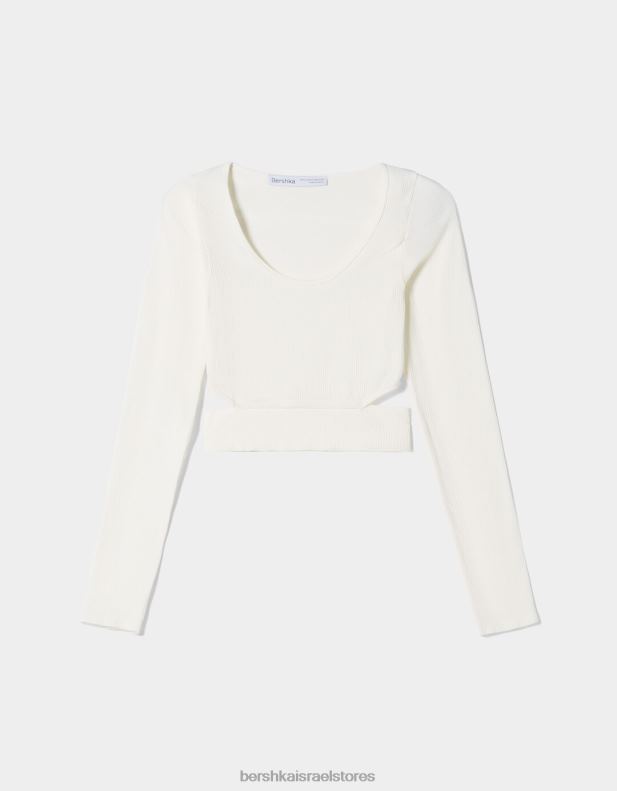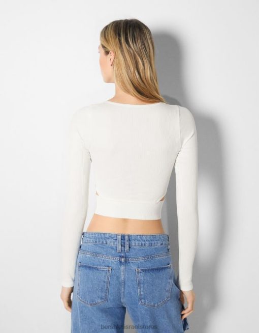 נשים חולצת טריקו ללא תפרים עם שרוולים ארוכים עם פירוט חתוך בצד צבע קרם 2L6JD355 Bershka הַלבָּשָׁה