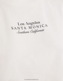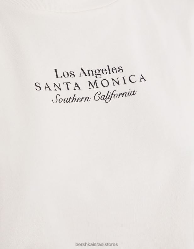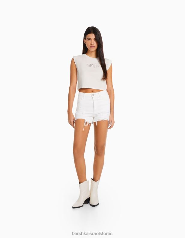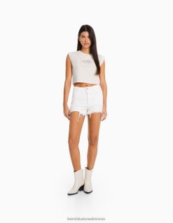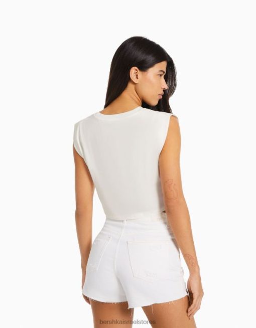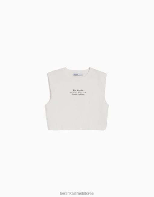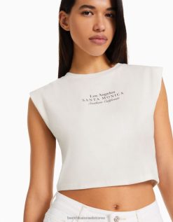 נשים חולצת טריקו מודפסת ללא שרוולים צבע קרם 2L6JD319 Bershka הַלבָּשָׁה