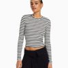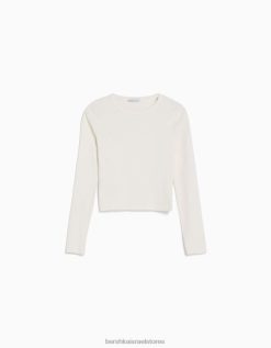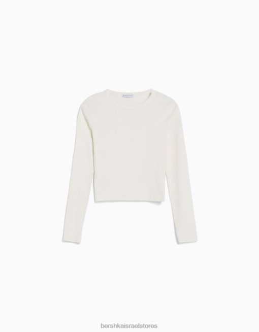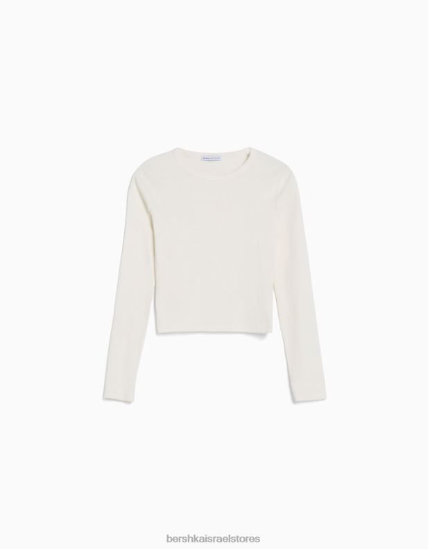 נשים חולצת טריקו עם שרוולים ארוכים עם צלעות לבן 2L6JD436 Bershka הַלבָּשָׁה