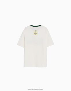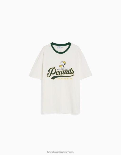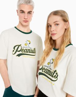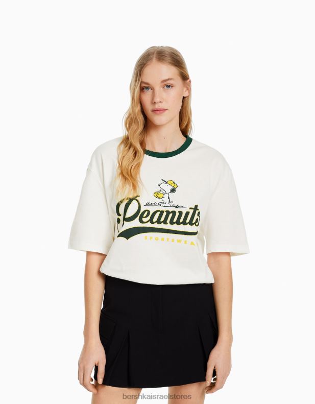 נשים חולצת טריקו עם שרוולים קצרים בהדפס סנופי לבן 2L6JD564 Bershka הַלבָּשָׁה
