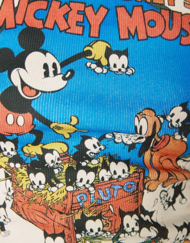 נשים חולצת טריקו עם שרוולים קצרים בהדפס מיקי מאוס צבע קרם 2L6JD580 Bershka הַלבָּשָׁה