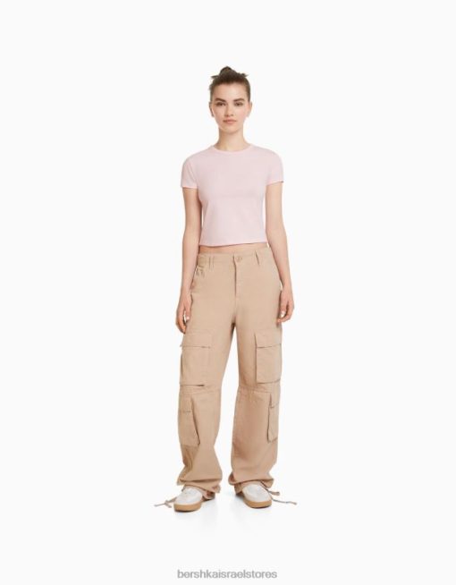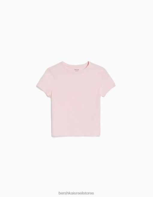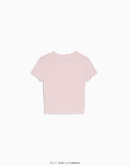 נשים חולצת טריקו עם שרוולים קצרים וָרוֹד 2L6JD618 Bershka הַלבָּשָׁה