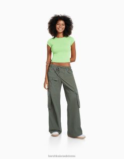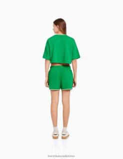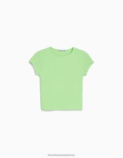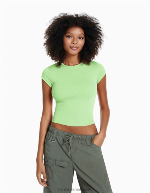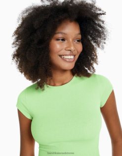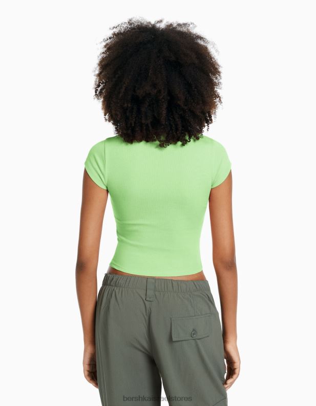 נשים חולצת טריקו עם שרוולים קצרים ירוק 2L6JD349 Bershka הַלבָּשָׁה