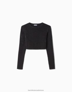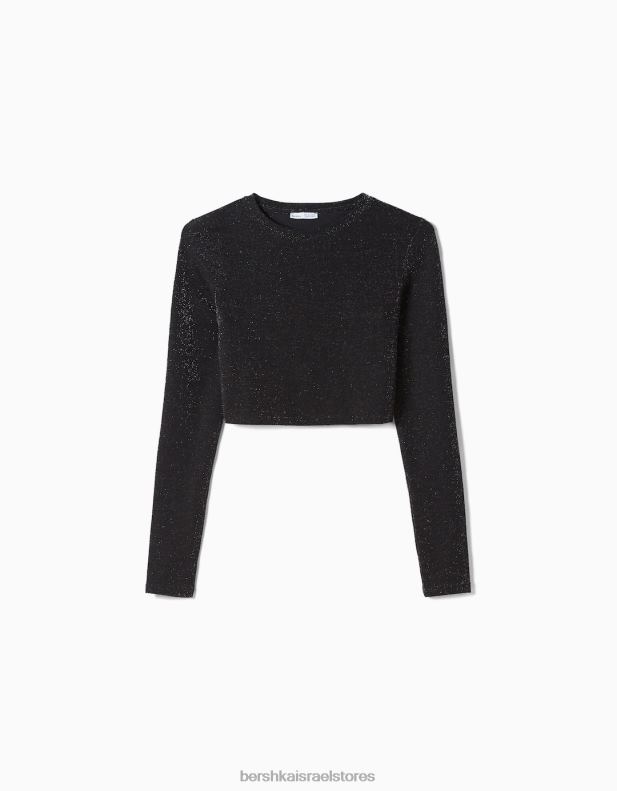 נשים חולצת טריקו עם שרוול ארוך שָׁחוֹר 2L6JD647 Bershka הַלבָּשָׁה