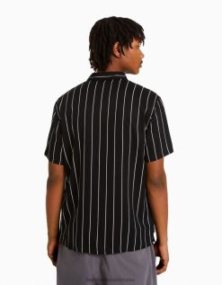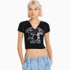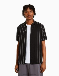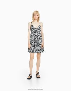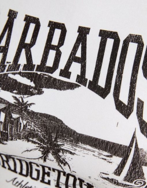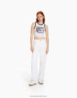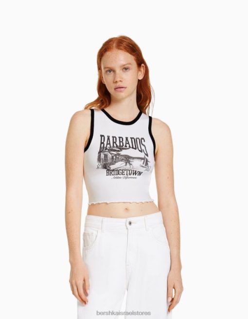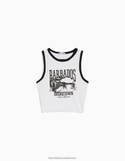נשים חולצת טריקו קצוצה מודפסת ללא שרוולים לבן שחור 2L6JD293 Bershka הַלבָּשָׁה