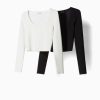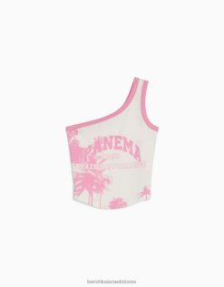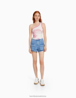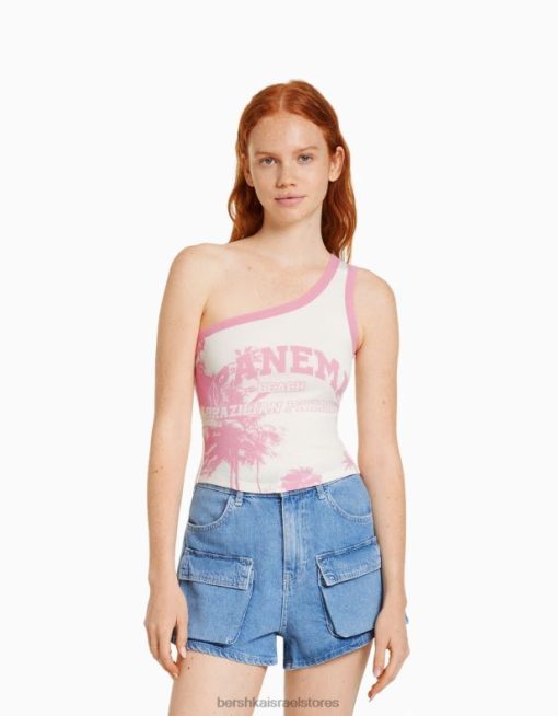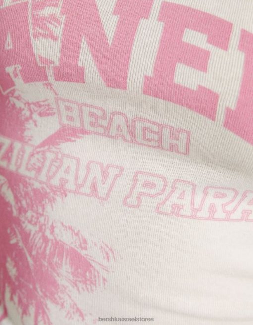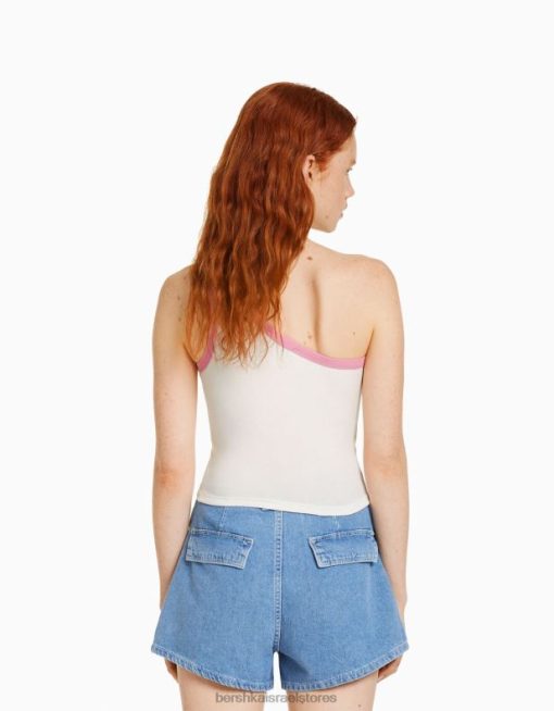 נשים חולצת טריקו קצוצה עם רצועות מודפסות צבע קרם 2L6JD655 Bershka הַלבָּשָׁה