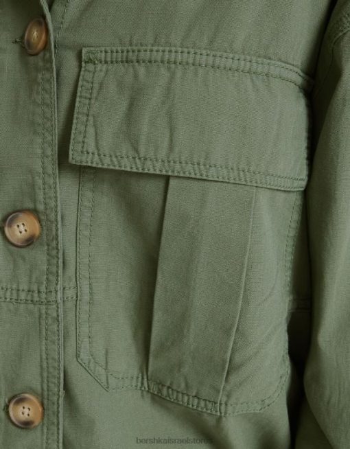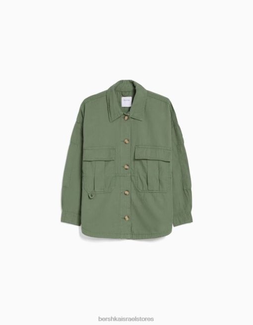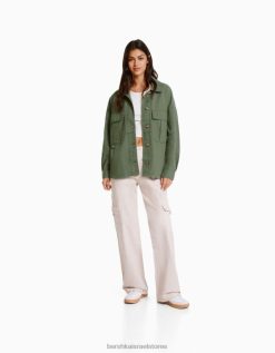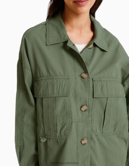 נשים חולצת כותנה עם שרוולים ארוכים עם כיסים חָקִי 2L6JD1125 Bershka הַלבָּשָׁה