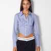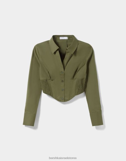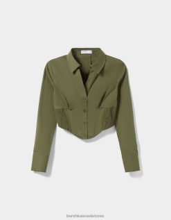 נשים חולצת מחוך פופלין מצוידת עם שרוולים ארוכים חָקִי 2L6JD930 Bershka הַלבָּשָׁה