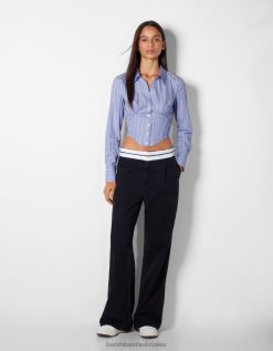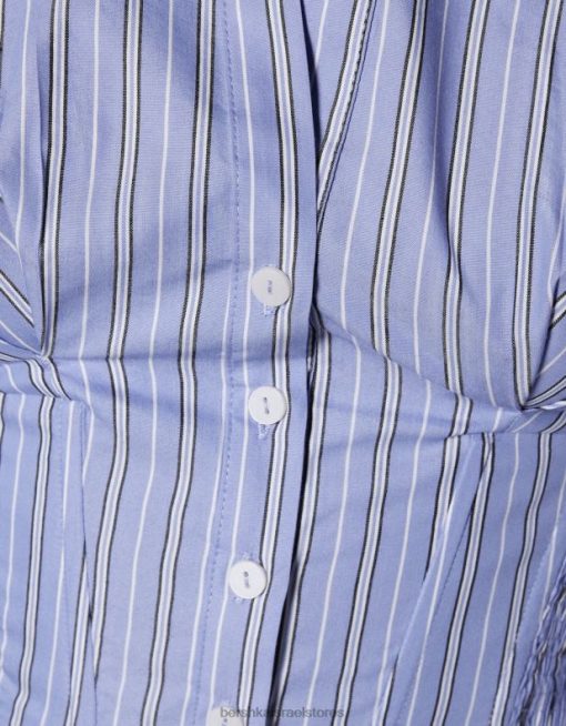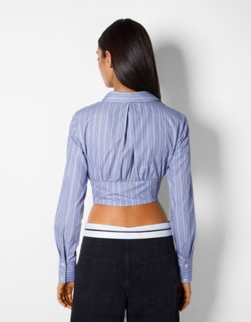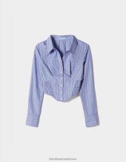 נשים חולצת מחוך פופלין מצוידת עם שרוולים ארוכים כחול בהיר 2L6JD929 Bershka הַלבָּשָׁה