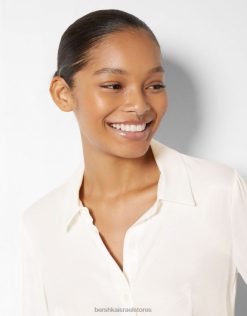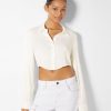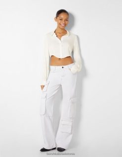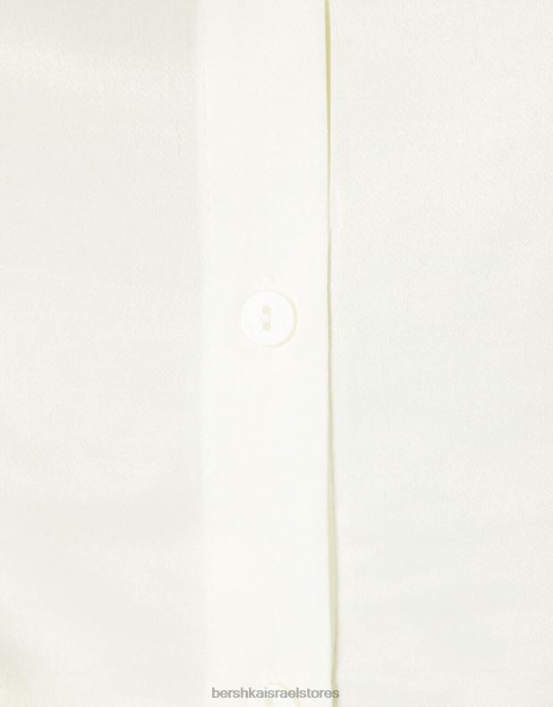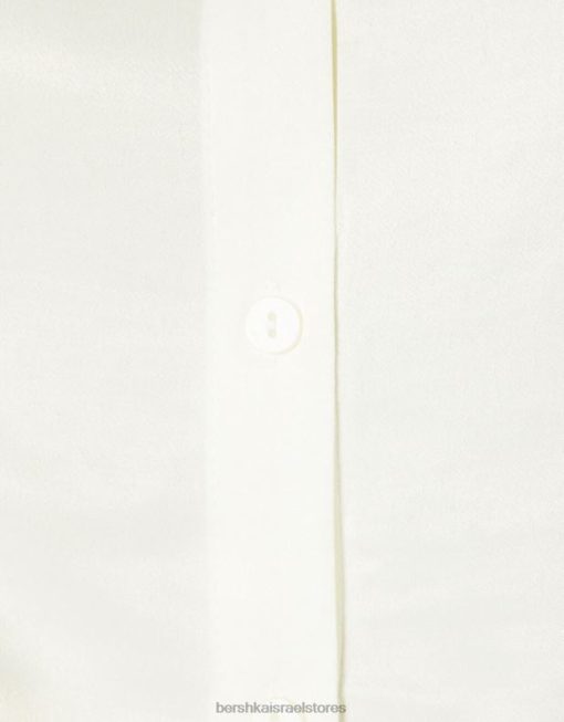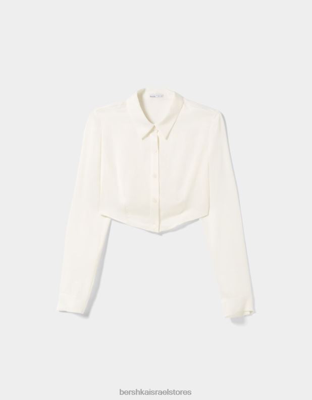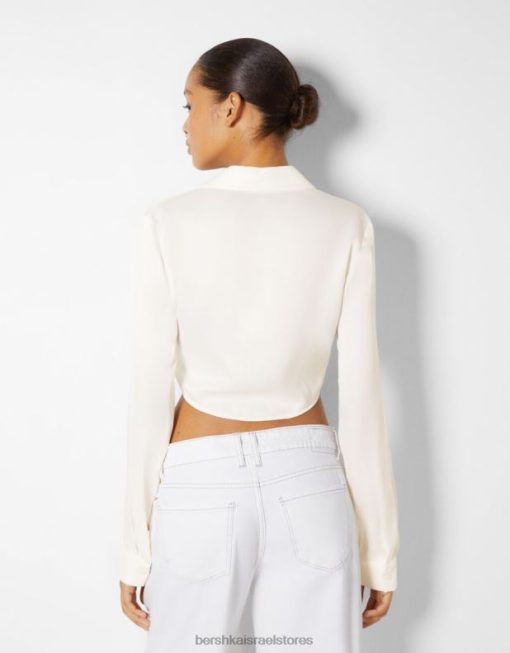נשים חולצת סאטן קצוצה עם שרוול ארוך קרם 2L6JD924 Bershka הַלבָּשָׁה
