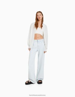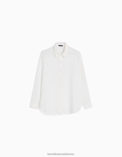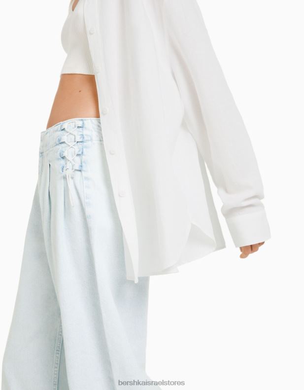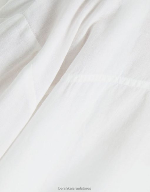 נשים חולצת פשתן עם שרוול ארוך צבע קרם 2L6JD903 Bershka הַלבָּשָׁה