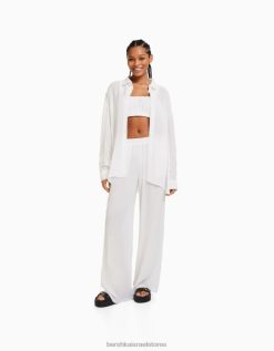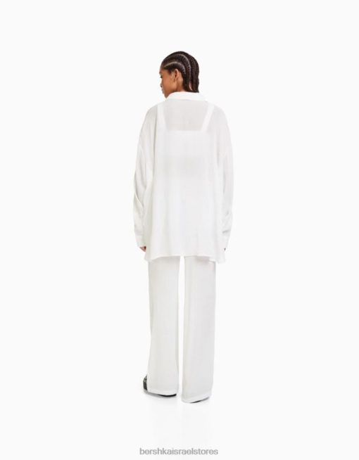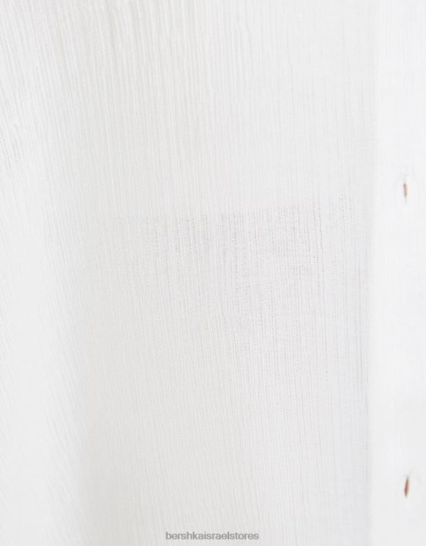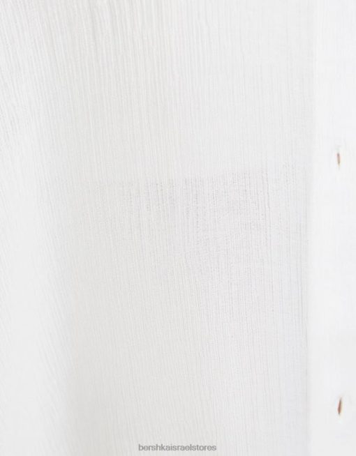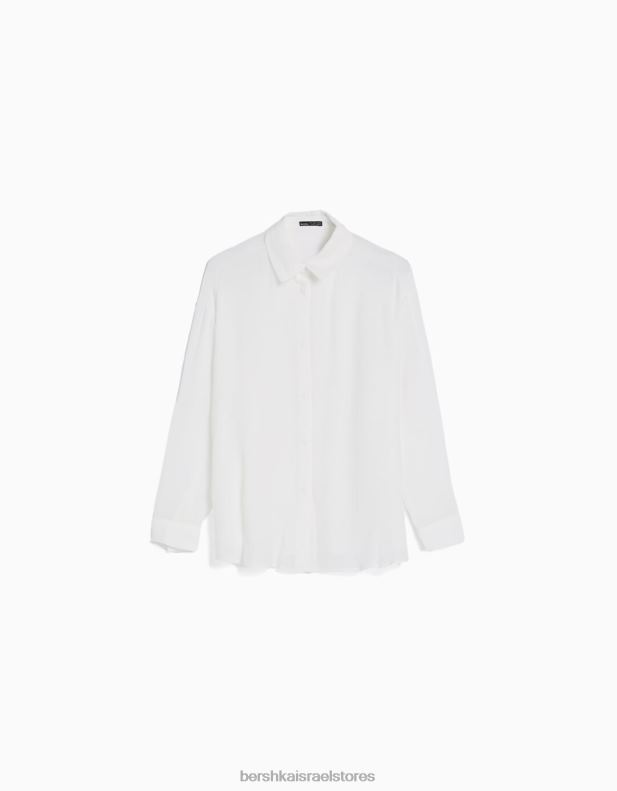 נשים חולצת קרפ עם שרוול ארוך קרם 2L6JD917 Bershka הַלבָּשָׁה